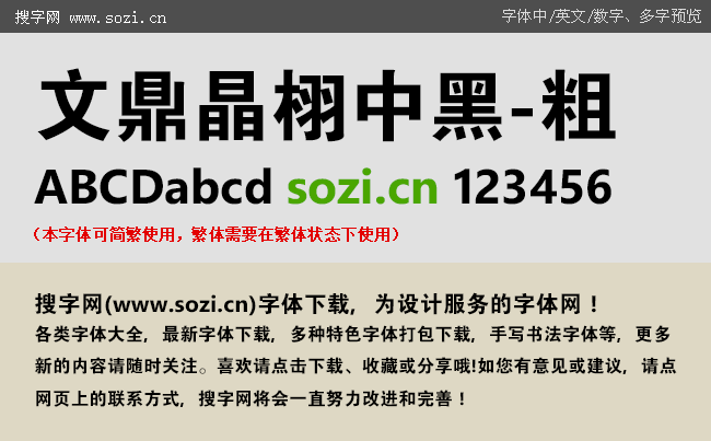 搜字網(wǎng)所有字體源于網(wǎng)絡(luò)分享,免費(fèi)供大家學(xué)習(xí)交流。除有廠商申明可免費(fèi)商用以外,都僅限個人非商業(yè)使用。未獲字體開發(fā)方商用授權(quán)的,嚴(yán)禁擅自商用,因此造成的侵權(quán)責(zé)任須自行承擔(dān)。本站不承擔(dān)任何版權(quán)責(zé)任和糾紛,本站出于愛好而建,善意免費(fèi)為各類字體開發(fā)者宣傳推廣,您認(rèn)為有任何不妥之處,請與我們聯(lián)系,將會第一時間給您答復(fù)!